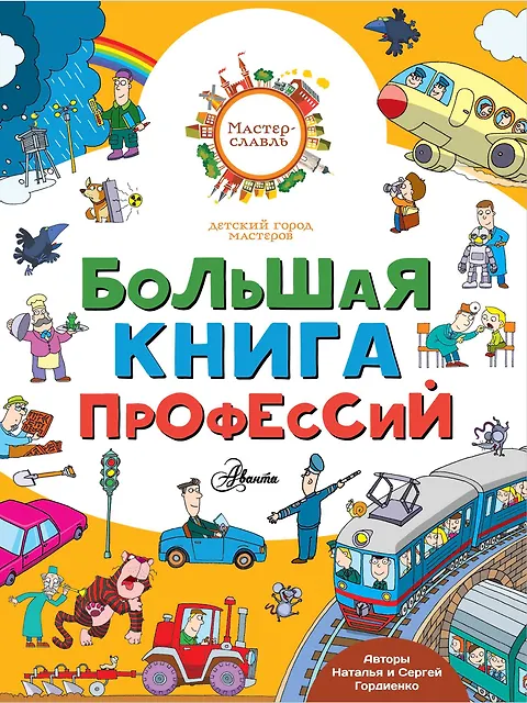 "Большая книга профессий", написанная замечательными авторами Натальей и Сергеем Гордиенко и подготовленная вместе с "Детским городом мастеров - Мастерславлем", в нескучной, игровой форме даст маленьким читателям общее представление и первые сведения о многих распространённых и важных профессиях.